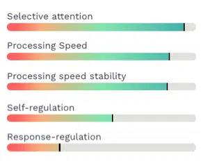 צפה בביצועי הלקוח שלך לאורך ההערכה ועם כל סוגי המסיחים, והשווה באופן אינטראקטיבי את המדדים השונים זה לצד זה. עבור נבדקים בני 26 ומטה, תוכל להשוות את ביצועי הפרט לקבוצת התייחסות של האוכלוסייה הכללית.
